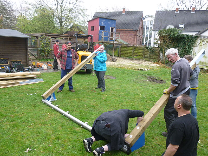 Mithilfe von Betreuern und Freunden der Gruppe wurde im 600 Quadratmeter großen Garten ein Grillplatz errichtet, die Schaukeln und der Sandkasten wurden erneuert, und das Spielhaus bekam ein neues Dach. Außerdem wurden die Beete angelegt und eine Hängematte angebracht.