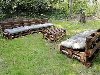 Die Firma Klingele hat 300€ gespendet! Unsere Diagnostikgruppe hat sich mit dem Geld einen (Sommer-)Traum erfüllt: Sie haben Europaletten angestrichen und sich daraus selber Lounge-Möbel gebaut.