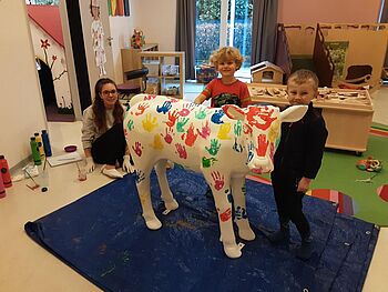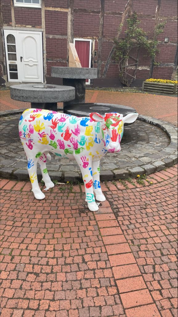 Am Dorfbrunnen in Südkirchen ist seit Ende März ein buntes Kälbchen zu sehen und es steht für ein gemeinsames Projekt unserer Kitas „Am Holtweg“, „Waldwichtel“ und „Hoppetosse“. Nicht nur für unsere Kindertageseinrichtungen oder für die Jugendhilfe Werne, dieses von Kindern bemaltes Kälbchen steht für ein noch größeres WIR.