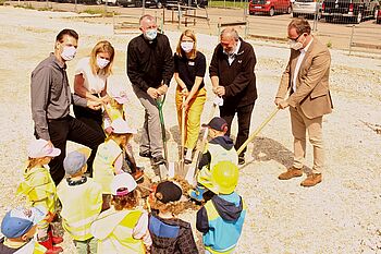 Die Bauherrin, die Jugendhilfe Werne, freute sich heute über den ersten Spatenstich und die Arbeiten für das rund 2,5 Millionen Euro teure Kita-Gebäude können endlich beginnen.