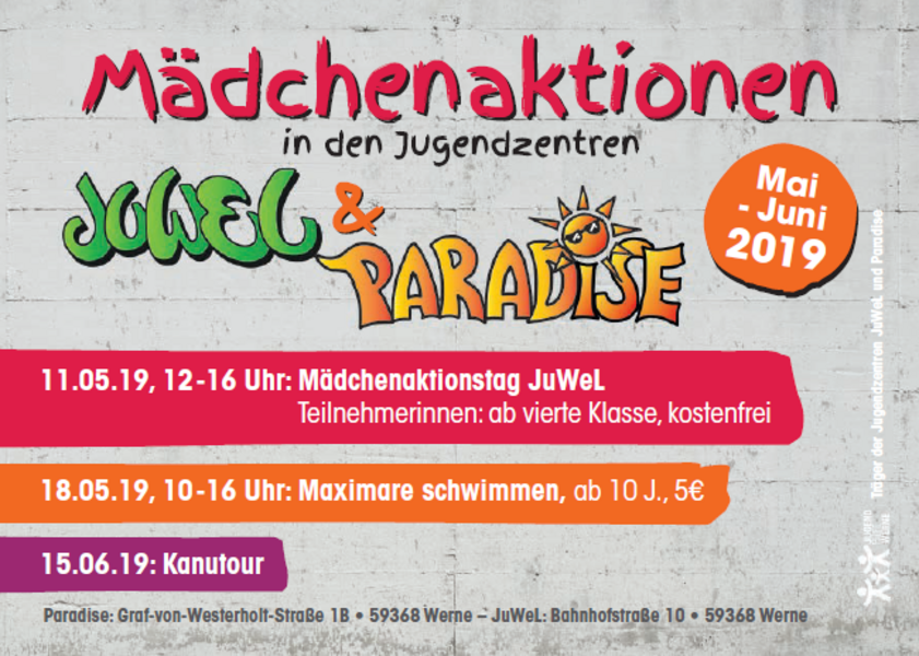Angebote für Mädchen in unseren Jugendzentren JuWeL und Paradise in Werne