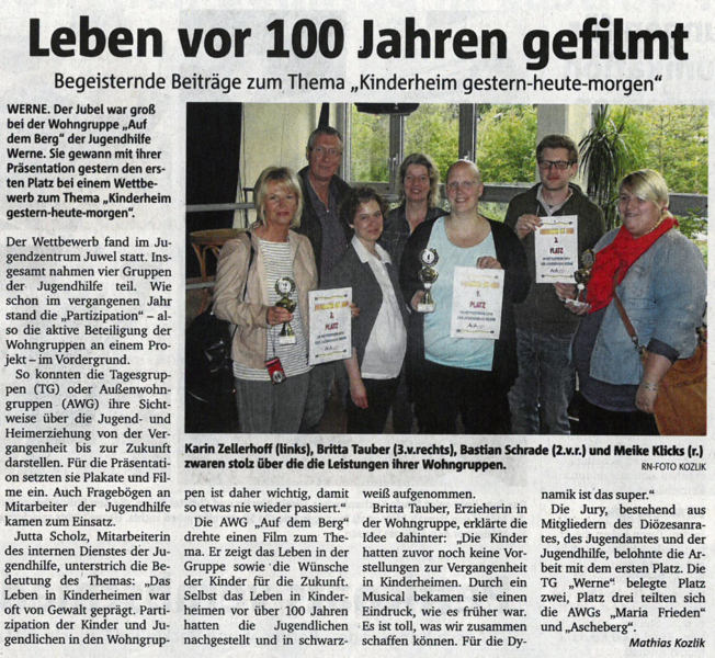 Gestern Mittag stand die Platzierung für den Wettbewerb 2014 unter dem Motto KINDERHEIM GESTERN - HEUTE - MORGEN fest: