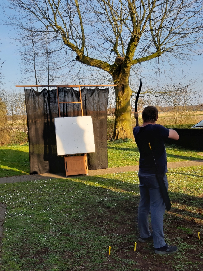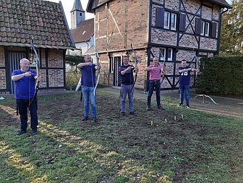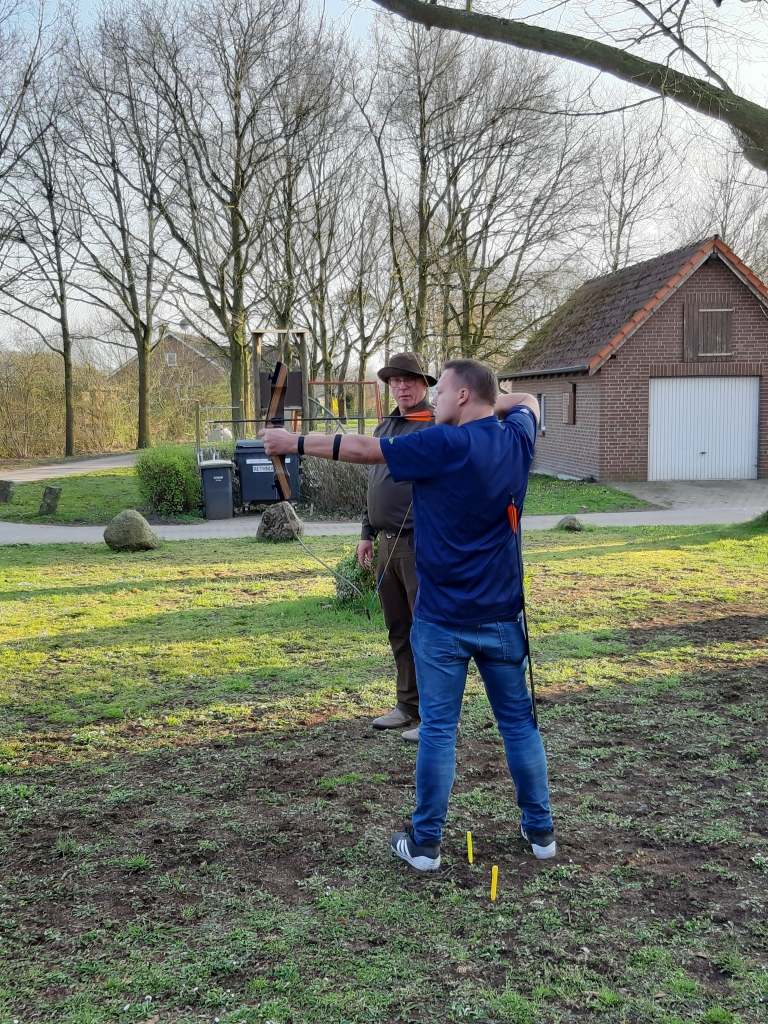 "Mann ist dann mal weg!" - diese Einladung nahmen einige unserer Pflegeväter wörtlich und machten sich gemeinsam auf den Weg durch das Naturschutzgebiet "Venne" zwischen Davensberg und Senden. Nach der gut einstündigen Wanderung konnten die Männer unter Anleitung eines Bogentrainers erste Erfahrungen an einem professionellen Sportbogen sammeln. Dabei ging es nicht zuerst darum, genau ins Schwarze zu treffen. Vielmehr standen Körperhaltung und Körpererfahrung im Vordergrund. Trotzdem schafften es alle Väter am Ende des Tages, den Pfeil zielsicher auf der Scheibe zu platzieren.