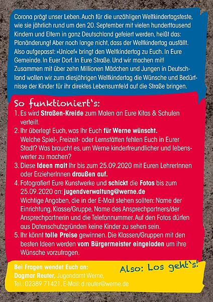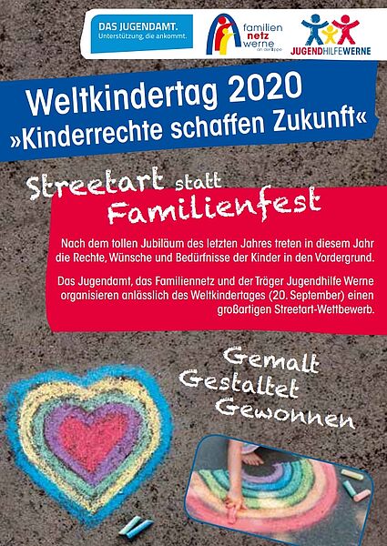 Das Jugendamt, das Familiennetz und die Jugendhilfe Werne organisieren anlässlich des Weltkindertages (20. September) einen großartigen Streetart-Wettbewerb.