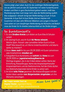- Es wird Straßen-Kreide zum Malen an Eure Kitas & Schulen verteilt.