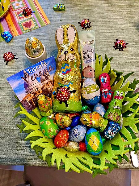 Süß war der Festtisch an diesem Ostersonntag in sechs Wohngruppen der Jugendhilfe Werne dank der Osterkörbchen von „Düt & Dat“. 50 Kinder und Jugendliche freuten sich über Süßigkeiten und einen Gutschein für die Eisdiele. Viele Schokoladen und 3 Kugel Eis pro Kind schenkte dieses Jahr „Düt und Dat“. „Dass unsere traditionelle Osterspende trotz Corona die Kinder erreichen kann, lag uns sehr am Herzen. Wir hoffen, dass wir dieses Jahr wieder öffnen können und die Spendenübergaben bald persönlich stattfinden werden. Das würde uns sehr freuen “, sagt Marita Melcher von „Düt und Dat“.