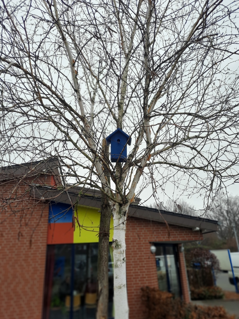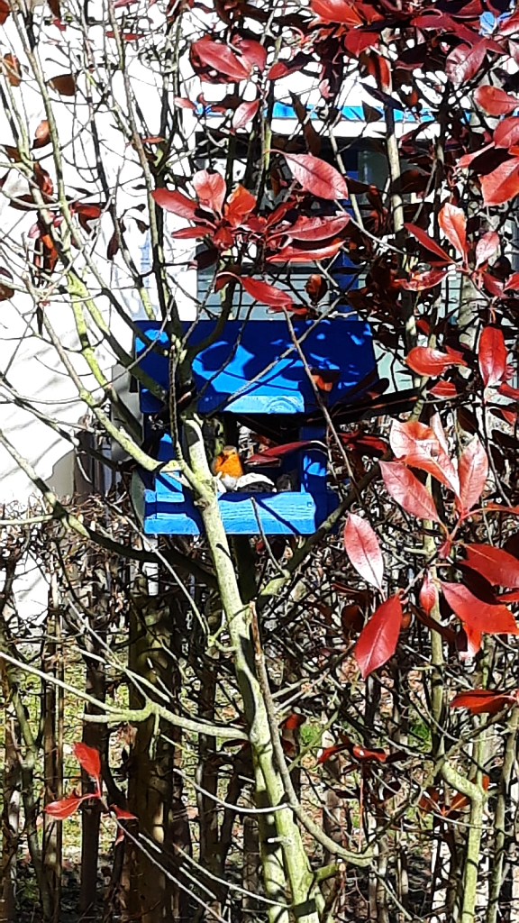Drei Stück haben wir. In Blau hat sie das Team der Haustechnik gestrichen. Und die ersten Gäste waren schon an der Futterstelle, vor ein paar Tagen als es mehr Sonne gab ….