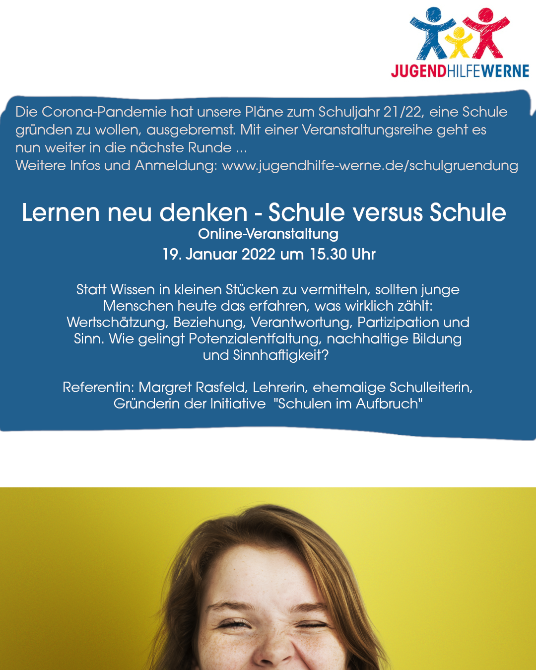 Am 19. Januar fand die 3. Online-Fachveranstaltung der Jugendhilfe Werne zum Thema „Lernen neu denken-Schule versus Schule“ mit Margret Rasfeld statt.